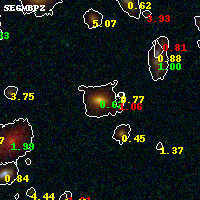 Object #1394 x,y = (3404, 1919) RA, Dec = (01:37:21.456, -8:27:56.52) = (24.33940, -8.46570) BPZ = 0.619 [0.551--0.677] type = 5.00 (ES0_B10) chisq2 = 0.01 ODDS = 0.95 z_cluster = 0.566