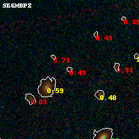 Object #14 x,y = (3129, 3759) RA, Dec = (01:37:22.584, -8:26:06.00) = (24.34410, -8.43500) BPZ = 0.487 [0.266--4.232] type = 8.60 (SB2_B10 - SB1_B10) chisq2 = 2.04 ODDS = 0.11 z_cluster = 0.566