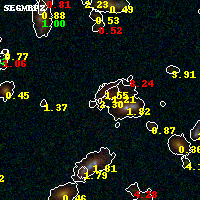 Object #1423 x,y = (3520, 1876) RA, Dec = (01:37:21.000, -8:27:59.04) = (24.33750, -8.46640) BPZ = 2.304 [1.220--2.946] type = 8.00 (SB1_B10) chisq2 = 0.49 ODDS = 0.32 z_cluster = 0.566