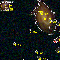 Object #143 x,y = (2074, 3492) RA, Dec = (01:37:26.832, -8:26:22.20) = (24.36180, -8.43950) BPZ = 0.914 [0.194--3.684] type = 9.70 (SB3_B10 - SB2_B10) chisq2 = 0.71 ODDS = 0.16 z_cluster = 0.566