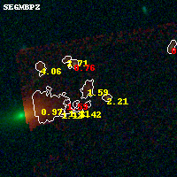 Object #145 x,y = (1397, 3479) RA, Dec = (01:37:29.568, -8:26:22.92) = (24.37320, -8.43970) BPZ = 1.593 [1.391--2.265] type = 8.20 (SB1_B10 - SB2_B10) chisq2 = 0.66 ODDS = 0.37 z_cluster = 0.566
