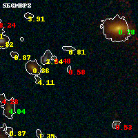 Object #1487 x,y = (3651, 1829) RA, Dec = (01:37:20.472, -8:28:01.92) = (24.33530, -8.46720) BPZ = 0.577 [0.134--3.594] type = 10.20 (SB3_B10 - SB11_A_0_l) chisq2 = 1.91 ODDS = 0.22 z_cluster = 0.566