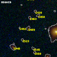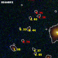 Object #1489 x,y = (2043, 1824) RA, Dec = (01:37:26.952, -8:28:02.28) = (24.36230, -8.46730) BPZ = 0.444 [0.277--4.142] type = 7.60 (SB1_B10 - Scd_B10) chisq2 = 0.69 ODDS = 0.12 z_cluster = 0.566