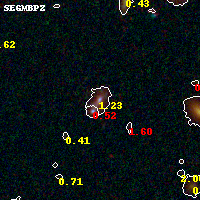 Object #151 x,y = (1712, 3468) RA, Dec = (01:37:28.296, -8:26:23.64) = (24.36790, -8.43990) BPZ = 1.234 [1.079--1.352] type = 9.30 (SB2_B10 - SB3_B10) chisq2 = 0.13 ODDS = 0.81 z_cluster = 0.566