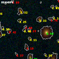 Object #1513 x,y = (2266, 1793) RA, Dec = (01:37:26.064, -8:28:04.08) = (24.35860, -8.46780) BPZ = 2.227 [1.396--2.460] type = 10.00 (SB3_B10) chisq2 = 1.10 ODDS = 0.57 z_cluster = 0.566