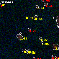 Object #1523 x,y = (2023, 1784) RA, Dec = (01:37:27.048, -8:28:04.44) = (24.36270, -8.46790) BPZ = 0.785 [0.331--4.812] type = 8.40 (SB1_B10 - SB2_B10) chisq2 = 1.28 ODDS = 0.29 z_cluster = 0.566
