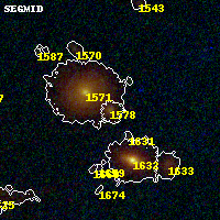 Object #1578 x,y = (1854, 1660) RA, Dec = (01:37:27.720, -8:28:12.00) = (24.36550, -8.47000) BPZ = 0.191 [0.132--3.703] type = 4.00 (Ell4_A_0) chisq2 = 0.20 ODDS = 0.38 z_cluster = 0.566