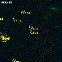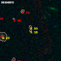 Object #1599 x,y = (3745, 1685) RA, Dec = (01:37:20.088, -8:28:10.56) = (24.33370, -8.46960) BPZ = 5.183 [0.789--5.702] type = 8.00 (SB1_B10) chisq2 = 0.25 ODDS = 0.58 z_cluster = 0.566