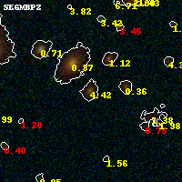 Object #1618 x,y = (2591, 1646) RA, Dec = (01:37:24.744, -8:28:12.72) = (24.35310, -8.47020) BPZ = 4.416 [0.386--4.605] type = 7.50 (SB1_B10 - Scd_B10) chisq2 = 0.15 ODDS = 0.92 z_cluster = 0.566