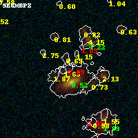 Object #1710 x,y = (2819, 1549) RA, Dec = (01:37:23.832, -8:28:18.84) = (24.34930, -8.47190) BPZ = 2.093 [1.183--2.591] type = 8.90 (SB2_B10 - SB1_B10) chisq2 = 1.21 ODDS = 0.33 z_cluster = 0.566