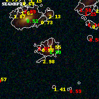 Object #1770 x,y = (2870, 1467) RA, Dec = (01:37:23.616, -8:28:23.52) = (24.34840, -8.47320) BPZ = 1.993 [1.890--2.083] type = 6.20 (Sbc_B10 - Scd_B10) chisq2 = 0.08 ODDS = 0.98 z_cluster = 0.566