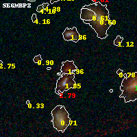 Object #1779 x,y = (3310, 1463) RA, Dec = (01:37:21.840, -8:28:23.88) = (24.34100, -8.47330) BPZ = 1.964 [1.632--2.149] type = 6.00 (Sbc_B10) chisq2 = 0.19 ODDS = 0.70 z_cluster = 0.566