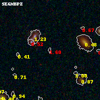 Object #181 x,y = (1742, 3442) RA, Dec = (01:37:28.176, -8:26:25.08) = (24.36740, -8.44030) BPZ = 1.597 [0.465--2.962] type = 9.50 (SB3_B10 - SB2_B10) chisq2 = 2.06 ODDS = 0.14 z_cluster = 0.566