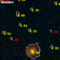 Object #1882 x,y = (1806, 1263) RA, Dec = (01:37:27.912, -8:28:35.76) = (24.36630, -8.47660) BPZ = 3.733 [0.411--4.141] type = 8.60 (SB2_B10 - SB1_B10) chisq2 = 0.65 ODDS = 0.60 z_cluster = 0.566