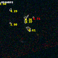 Object #1901 x,y = (2531, 1211) RA, Dec = (01:37:24.984, -8:28:39.00) = (24.35410, -8.47750) BPZ = 0.607 [0.367--0.846] type = 8.80 (SB2_B10 - SB1_B10) chisq2 = 0.17 ODDS = 0.42 z_cluster = 0.566