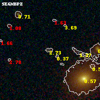 Object #1917 x,y = (1977, 1089) RA, Dec = (01:37:27.240, -8:28:46.20) = (24.36350, -8.47950) BPZ = 2.727 [2.307--3.168] type = 9.40 (SB2_B10 - SB3_B10) chisq2 = 0.96 ODDS = 0.50 z_cluster = 0.566
