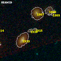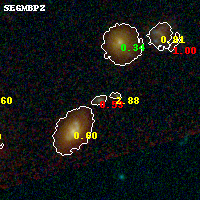 Object #1918 x,y = (2185, 1088) RA, Dec = (01:37:26.400, -8:28:46.20) = (24.36000, -8.47950) BPZ = 0.529 [0.425--0.676] type = 9.00 (SB2_B10) chisq2 = 1.15 ODDS = 0.65 z_cluster = 0.566