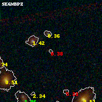 Object #20 x,y = (2947, 3730) RA, Dec = (01:37:23.304, -8:26:07.80) = (24.34710, -8.43550) BPZ = 0.383 [0.071--3.178] type = 10.00 (SB3_B10) chisq2 = 1.35 ODDS = 0.10 z_cluster = 0.566