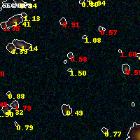 Object #208 x,y = (2251, 3393) RA, Dec = (01:37:26.136, -8:26:27.96) = (24.35890, -8.44110) BPZ = 1.499 [0.436--3.228] type = 10.20 (SB3_B10 - SB11_A_0_l) chisq2 = 0.68 ODDS = 0.13 z_cluster = 0.566