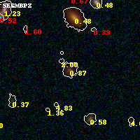 Object #213 x,y = (1806, 3383) RA, Dec = (01:37:27.912, -8:26:28.68) = (24.36630, -8.44130) BPZ = 0.870 [0.352--0.959] type = 7.00 (Scd_B10) chisq2 = 0.32 ODDS = 0.50 z_cluster = 0.566