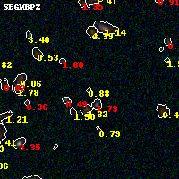 Object #235 x,y = (2163, 3360) RA, Dec = (01:37:26.472, -8:26:30.12) = (24.36030, -8.44170) BPZ = 0.875 [0.334--5.540] type = 8.90 (SB2_B10 - SB1_B10) chisq2 = 0.97 ODDS = 0.09 z_cluster = 0.566