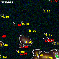Object #239 x,y = (3019, 3351) RA, Dec = (01:37:23.016, -8:26:30.48) = (24.34590, -8.44180) BPZ = 0.749 [0.274--5.075] type = 8.80 (SB2_B10 - SB1_B10) chisq2 = 0.23 ODDS = 0.05 z_cluster = 0.566