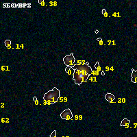 Object #241 x,y = (1626, 3349) RA, Dec = (01:37:28.656, -8:26:30.48) = (24.36940, -8.44180) BPZ = 0.441 [0.130--3.858] type = 9.90 (SB3_B10 - SB2_B10) chisq2 = 0.34 ODDS = 0.13 z_cluster = 0.566