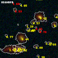 Object #279 x,y = (2378, 3329) RA, Dec = (01:37:25.608, -8:26:31.92) = (24.35670, -8.44220) BPZ = 1.682 [0.689--2.992] type = 10.50 (SB11_A_0_l - SB3_B10) chisq2 = 0.68 ODDS = 0.23 z_cluster = 0.566
