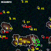 Object #280 x,y = (3081, 3320) RA, Dec = (01:37:22.776, -8:26:32.28) = (24.34490, -8.44230) BPZ = 1.373 [0.978--2.133] type = 8.50 (SB2_B10 - SB1_B10) chisq2 = 1.84 ODDS = 0.28 z_cluster = 0.566