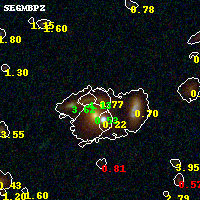 Object #385 x,y = (2505, 3204) RA, Dec = (01:37:25.104, -8:26:39.48) = (24.35460, -8.44430) BPZ = 0.766 [0.603--0.920] type = 7.10 (Scd_B10 - SB1_B10) chisq2 = 0.22 ODDS = 0.62 z_cluster = 0.566