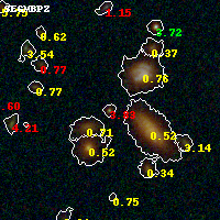 Object #405 x,y = (1808, 3178) RA, Dec = (01:37:27.912, -8:26:40.92) = (24.36630, -8.44470) BPZ = 3.833 [3.651--4.102] type = 8.90 (SB2_B10 - SB1_B10) chisq2 = 1.45 ODDS = 0.90 z_cluster = 0.566