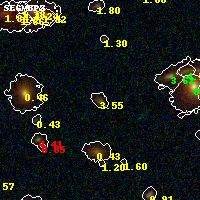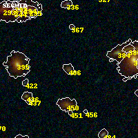 Object #406 x,y = (2406, 3174) RA, Dec = (01:37:25.488, -8:26:41.28) = (24.35620, -8.44480) BPZ = 3.550 [0.431--3.811] type = 9.00 (SB2_B10) chisq2 = 0.88 ODDS = 0.65 z_cluster = 0.566
