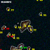 Object #424 x,y = (1454, 3138) RA, Dec = (01:37:29.352, -8:26:43.44) = (24.37230, -8.44540) BPZ = 0.411 [0.343--0.499] type = 7.20 (Scd_B10 - SB1_B10) chisq2 = 0.24 ODDS = 0.83 z_cluster = 0.566