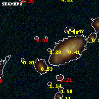 Object #442 x,y = (2991, 3107) RA, Dec = (01:37:23.136, -8:26:45.24) = (24.34640, -8.44590) BPZ = 1.280 [0.412--3.123] type = 9.60 (SB3_B10 - SB2_B10) chisq2 = 0.92 ODDS = 0.14 z_cluster = 0.566