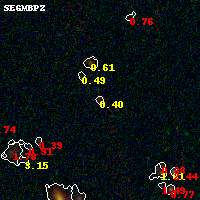 Object #446 x,y = (3398, 3131) RA, Dec = (01:37:21.480, -8:26:43.80) = (24.33950, -8.44550) BPZ = 0.395 [0.203--3.797] type = 8.00 (SB1_B10) chisq2 = 0.79 ODDS = 0.13 z_cluster = 0.566