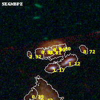 Object #45 x,y = (2129, 3645) RA, Dec = (01:37:26.616, -8:26:12.84) = (24.36090, -8.43690) BPZ = 0.813 [0.719--0.989] type = 8.00 (SB1_B10) chisq2 = 0.18 ODDS = 0.75 z_cluster = 0.566