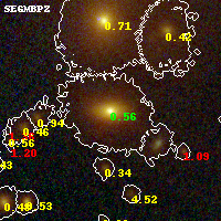 Object #487 x,y = (2499, 2246) RA, Dec = (01:37:25.128, -8:27:36.72) = (24.35470, -8.46020) BPZ = 0.557 [0.502--0.604] type = 4.60 (ES0_B10 - Ell4_A_0) chisq2 = 0.01 ODDS = 0.98 z_cluster = 0.566