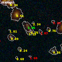 Object #52 x,y = (2905, 3620) RA, Dec = (01:37:23.472, -8:26:14.28) = (24.34780, -8.43730) BPZ = 0.747 [0.080--0.912] type = 10.00 (SB3_B10) chisq2 = 0.91 ODDS = 0.77 z_cluster = 0.566