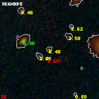 Object #54 x,y = (3229, 3644) RA, Dec = (01:37:22.176, -8:26:12.84) = (24.34240, -8.43690) BPZ = 0.482 [0.384--3.543] type = 9.30 (SB2_B10 - SB3_B10) chisq2 = 0.64 ODDS = 0.44 z_cluster = 0.566