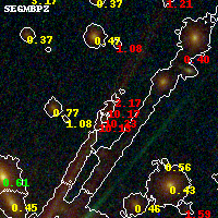 Object #548 x,y = (2803, 2999) RA, Dec = (01:37:23.880, -8:26:51.72) = (24.34950, -8.44770) BPZ = 10.168 [9.970--10.361] type = 9.90 (SB3_B10 - SB2_B10) chisq2 = 9.15 ODDS = 1.00 z_cluster = 0.566