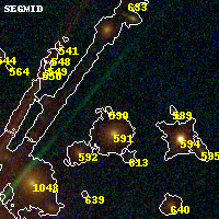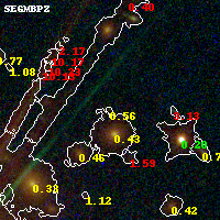 Object #590 x,y = (2856, 2950) RA, Dec = (01:37:23.688, -8:26:54.60) = (24.34870, -8.44850) BPZ = 0.556 [0.277--4.602] type = 7.50 (SB1_B10 - Scd_B10) chisq2 = 0.63 ODDS = 0.07 z_cluster = 0.566