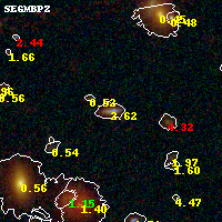 Object #62 x,y = (2447, 3621) RA, Dec = (01:37:25.320, -8:26:14.28) = (24.35550, -8.43730) BPZ = 2.619 [0.031--2.724] type = 8.80 (SB2_B10 - SB1_B10) chisq2 = 0.01 ODDS = 0.84 z_cluster = 0.566