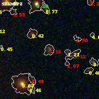 Object #657 x,y = (2947, 2832) RA, Dec = (01:37:23.304, -8:27:01.80) = (24.34710, -8.45050) BPZ = 3.158 [3.050--3.277] type = 9.00 (SB2_B10) chisq2 = 1.14 ODDS = 0.98 z_cluster = 0.566