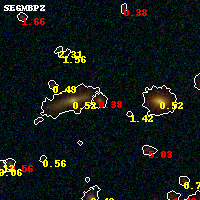 Object #666 x,y = (2003, 2853) RA, Dec = (01:37:27.120, -8:27:00.36) = (24.36300, -8.45010) BPZ = 0.382 [0.204--0.643] type = 6.40 (Sbc_B10 - Scd_B10) chisq2 = 1.00 ODDS = 0.37 z_cluster = 0.566