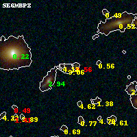 Object #697 x,y = (1903, 2785) RA, Dec = (01:37:27.528, -8:27:04.32) = (24.36470, -8.45120) BPZ = 3.055 [2.631--3.344] type = 7.70 (SB1_B10 - Scd_B10) chisq2 = 0.57 ODDS = 0.70 z_cluster = 0.566