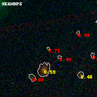 Object #7 x,y = (3106, 3777) RA, Dec = (01:37:22.656, -8:26:04.92) = (24.34440, -8.43470) BPZ = 3.710 [0.275--4.162] type = 9.90 (SB3_B10 - SB2_B10) chisq2 = 3.25 ODDS = 0.36 z_cluster = 0.566