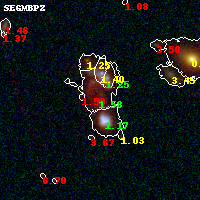 Object #703 x,y = (1456, 2747) RA, Dec = (01:37:29.328, -8:27:06.84) = (24.37220, -8.45190) BPZ = 1.579 [1.488--1.632] type = 6.30 (Sbc_B10 - Scd_B10) chisq2 = 0.11 ODDS = 0.99 z_cluster = 0.566