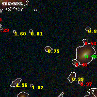 Object #709 x,y = (2240, 2798) RA, Dec = (01:37:26.160, -8:27:03.60) = (24.35900, -8.45100) BPZ = 0.754 [0.293--0.945] type = 7.70 (SB1_B10 - Scd_B10) chisq2 = 0.50 ODDS = 0.35 z_cluster = 0.566