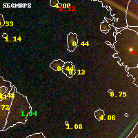 Object #727 x,y = (2491, 2739) RA, Dec = (01:37:25.152, -8:27:07.20) = (24.35480, -8.45200) BPZ = 0.130 [0.091--0.742] type = 9.10 (SB2_B10 - SB3_B10) chisq2 = 0.60 ODDS = 0.58 z_cluster = 0.566