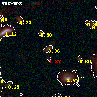 Object #77 x,y = (2256, 3588) RA, Dec = (01:37:26.112, -8:26:16.44) = (24.35880, -8.43790) BPZ = 3.358 [3.238--3.628] type = 9.00 (SB2_B10) chisq2 = 0.31 ODDS = 0.89 z_cluster = 0.566